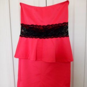 Wild Daisy Size M Pink with Black Lace Trim creating an empire waist. This empire waist creates a top and a pencil skirt. From top to hem 29"