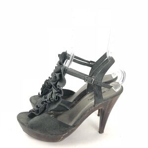 Wild Diva Womens Size 10 Faux Suede Ruffle Front Open Toe Sandals Heels