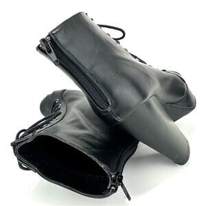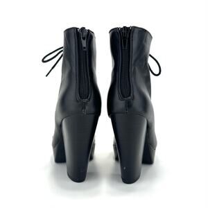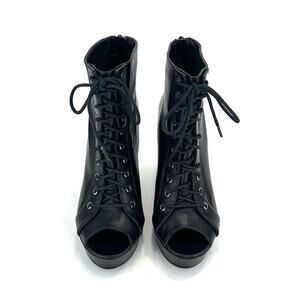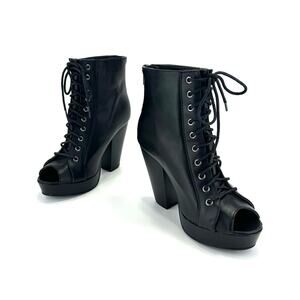 🫏 Wild Diva Black Peep-Toe Booties Size 6 Faux Leather Tapered Block High Heel Platform Lace-Up/Zipper Ankle Boots.
