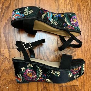 Wild Diva Black Platform Sandals with Floral Embroidery