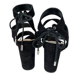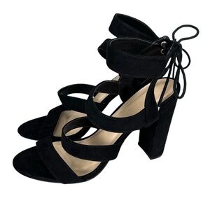 Wild Diva Lounge Black Faux Suede Lace Block Heels Size 8.5 M