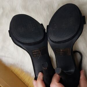 Doll up in these graceful high heel dress sandal featuring pearl topped foot strap, tapered platform, high heel stiletto, closed heel counter with zipper closure, foot strap with elastic.