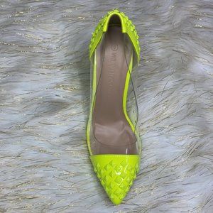 Wild Diva - Neon Yellow Pointy Studded Sexy Stiletto Heels Size 8