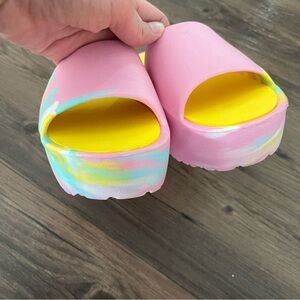 DETAILS: Wild Diva sandals women's 7, cotton candy platform chunky slides.