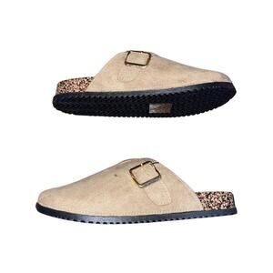 Wild Diva Slip on Mules Cork like Sole adjustable buckle faux suede NWT
