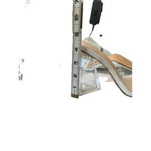 Features: Clear strap, Square toe, Block heel, 4 inch heel, Slip-on design, Versatile style