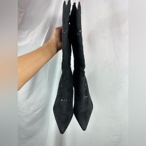 Wild Diva faux suede black stiletto sequin cowboy boots size 8