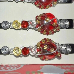 Wild Eye Design Cocktail Christmas Stainless Forks Handcrafted Beaded 3 Prong