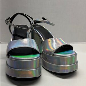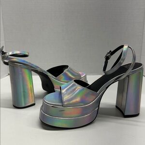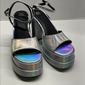 Wild Fable Alessia Platform Heels Open Toe Silver Holographic Iridescent Size 8