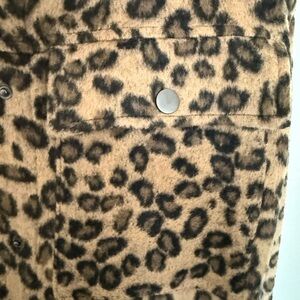 Chic animal print jacket. Features bold design and button-up style for an oversized look.