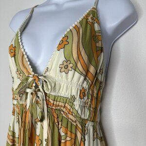 Wild Fable Babydoll Mini Dress Size M 60s Floral Retro Hippie 70s Boho