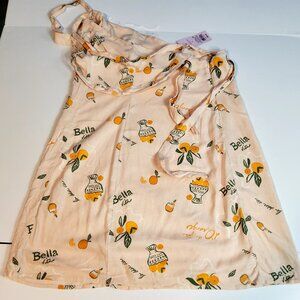 Wild Fable Bella Vista Lemon Print One-Shoulder Dress Size L Rayon & Linen Blend