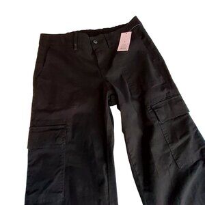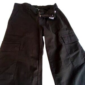 Wild Fable Black Cargo Pants M Elastic Waist Adjustable Hem 98% Cotton 2% Spande