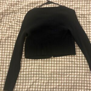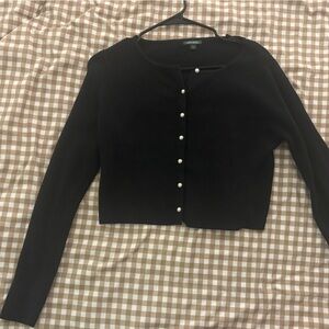 Cropped black cardigan with ribbed texture and pearl buttons. New without tags. Never worn