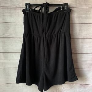 Wild Fable Black Terry Cloth Romper Short Outfit Bow Front Keyhole Halter Tie M