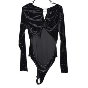 Wild Fable Black Velour Celestial Starry Night Long Sleeve Bodysuit Women's XXL