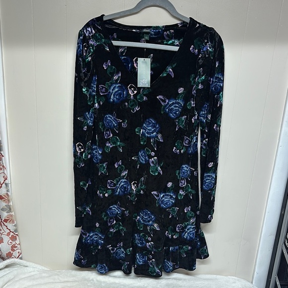 Wild Fable Black and Blue Floral Mini Dress great with pair leggings