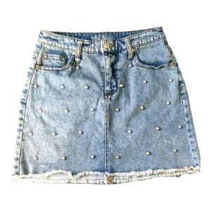 Wild Fable Blue Denim Casual Mid Waisted Frayed Mini Jean Skirt Size S Studded