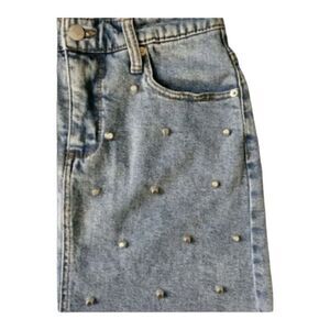 Wild Fable 98% Cotton Light l Blue Denim Studded, Zipper-Closure, 5 Pockets, Raw Hem Straight Mini Skirt Size 8. Great Pre-owned Condition With no holes or stains. For material and care see pictures please.
