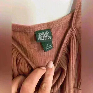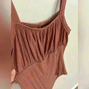 Great condition “rust” colored wild fable bodysuit. It is stretchy. Three snap closure. Runched style on top.