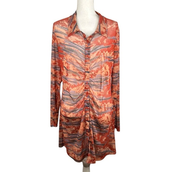 Wild Fable Boho Rust & Brown Sheer Button Down Long Sleeve Dress Size Large