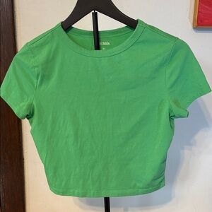 Bold green crop top with short sleeves. Ideal for everyday style.