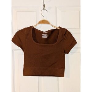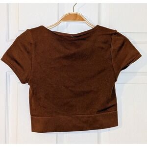 Keywords: Wild Fable, crop top, brown top, ribbed knit, square neck, short sleeve, tee shirt, casual top, womens top, size small, knit top, fitted top, trendy top