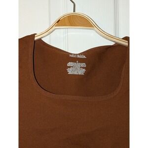 Wild Fable Brown Crop Top Ribbed Knit Square Neck Short Sleeve Tee Shirt S NWT