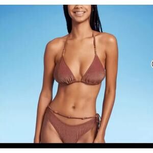Wild Fable Brown Lurex Sparkly Beaded Bikini Swim Bottom XS