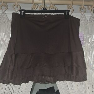 Chic brown mini skort with ruffled layers. Perfect for casual outings.
