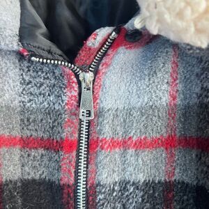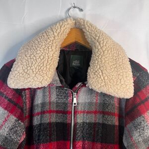 Wild Fable Buffalo Red Plaid Faux Fur Collar Preppy Zip Up Wool Blend Jacket MD