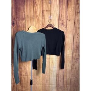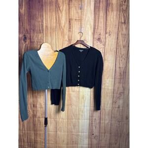 Wild Fable Bundle of Cropped, Cardigan Sweaters Deep Green Black Size S