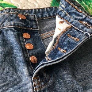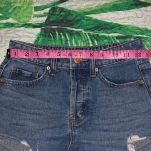 Distressed wild fable high waist shorts. I’ve only worn these a couple times. I really love these, they remind me of a Levi style! Runs true to size and 100% cotton. Button front with distressed detailing. No noted stains/tears. Please do not hesitate to reach out for further questions/comments/photos/offers. I’ll be happy to respond. :)