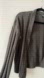 Button-less, open front cardigan. Ribbed texture. Ideal for layering. Slight pilling throughout.