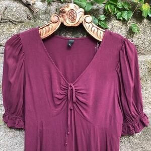 Wild Fable Cinched Gathered Bust Ruffle Puff Sleeves Burgundy A Line Mini Dress