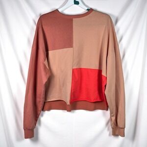 Wild Fable Color Block Pullover Sweatshirt Raw Hem Cropped LS Trendy Woman XXL