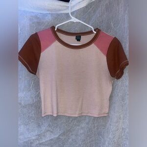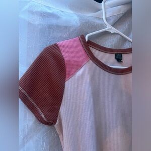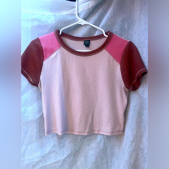 Waffleknit, target, pink, colorblock, coquette, baby tee, y2k, coquette, angelcore, princesscore, preppy, cropped, bimbocore, kawaii, kawaiicore, cutecore