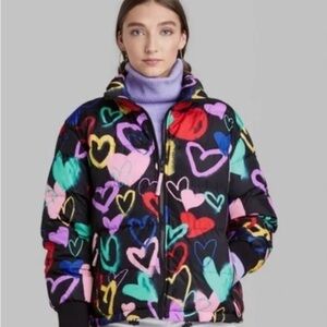 Wild Fable Colorful Heart Pattern Puffer Jacket