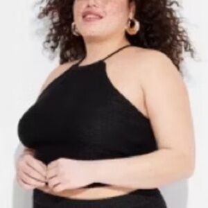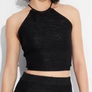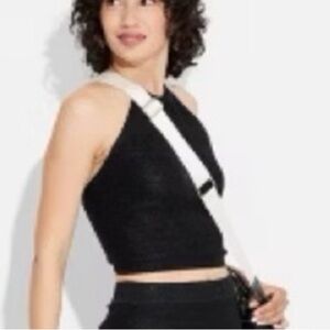 Black sweater tank from Wild Fable™ with a high crew neckline and ribbed waist. Tailored in a regular fit with a cropped-cut silhouette. Ventilating design with a lace-up back featuring crisscross straps and an adjustable tie closure completes the design.