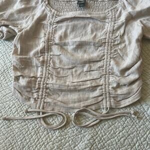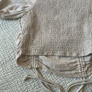 Wild Fable Crop Top Blouse Beige Cinched Short Puff Sleeve Size M NWT