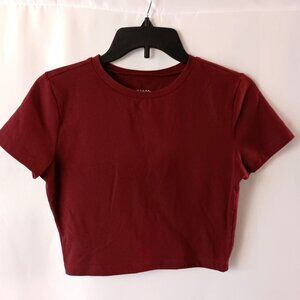 Wild Fable Crop Top Burgundy Size M Stretchy Cotton Blend Casual Short Shirt