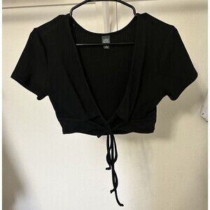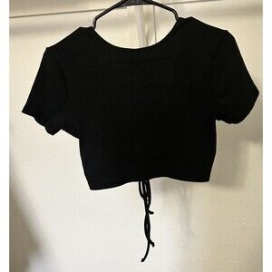 Wild Fable Crop Top Tie Back Short Sleeve Black Women’s Ribbed Size M