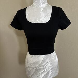 Wild Fable Crop Top Women’s Size Large Black Ribbed Scoop Neck Short Sleeve Y2K
