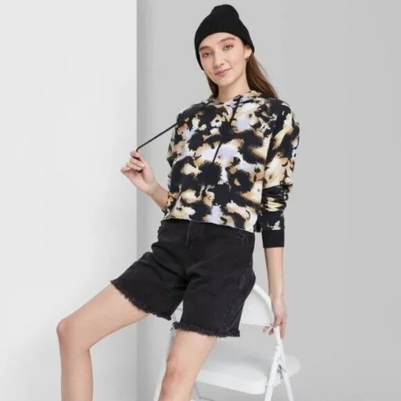 Wild Fable Cropped Hoodie Womens Tie Dye Fleece Black Athleisure Warm