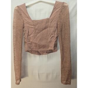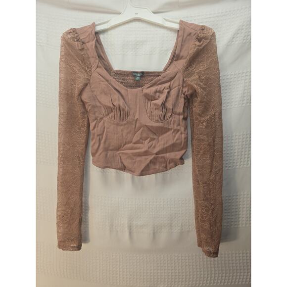 Wild Fable Cropped Sheer Top Womens Size XXS Brown Long Sleeve 6254