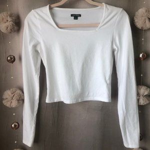 Wild Fable Cropped Square Neck Long Sleeve White T-shirt