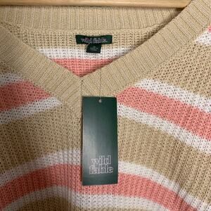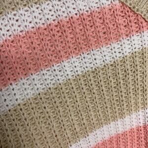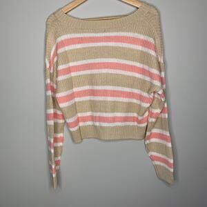 Tan, Pink, and White Striped Long Sleeve Cropped Sweater