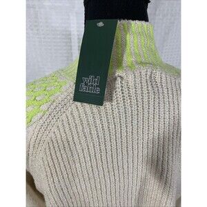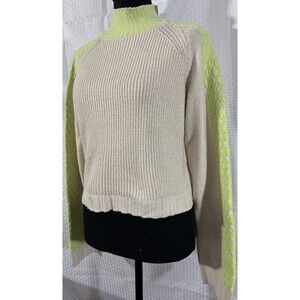 Wild Fable Cropped Sweater Womens XXS NWT Cream Lime Green Mock Neck Oversized S