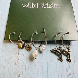 Wild Fable Dangle Earrings Silvertone Goldtone Hoops Pearls Mushrooms Dolphins