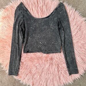 Wild Fable Dark Grey Long-sleeve Crop Top